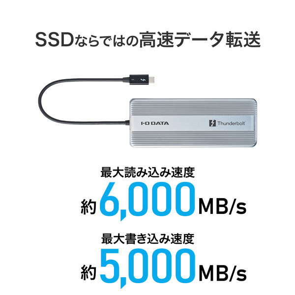 最大読み込み速度は約6000MB/sと、Thunderbolt4/USB4(R)SSDの約1.5倍高速!
