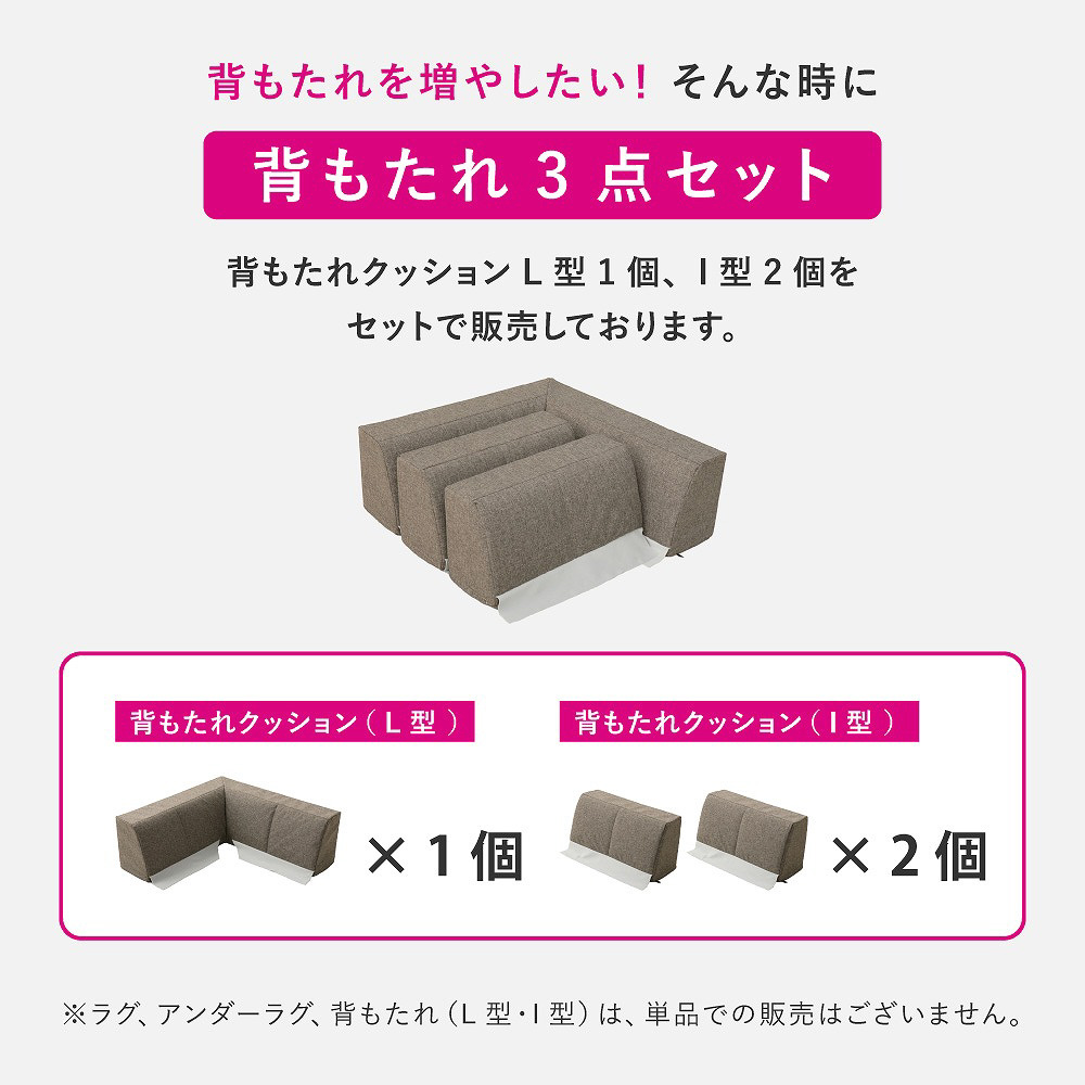 ラグ・アンダーラグ・背もたれクッションを組み合わせて、背もたれの位置を自由にかえられる