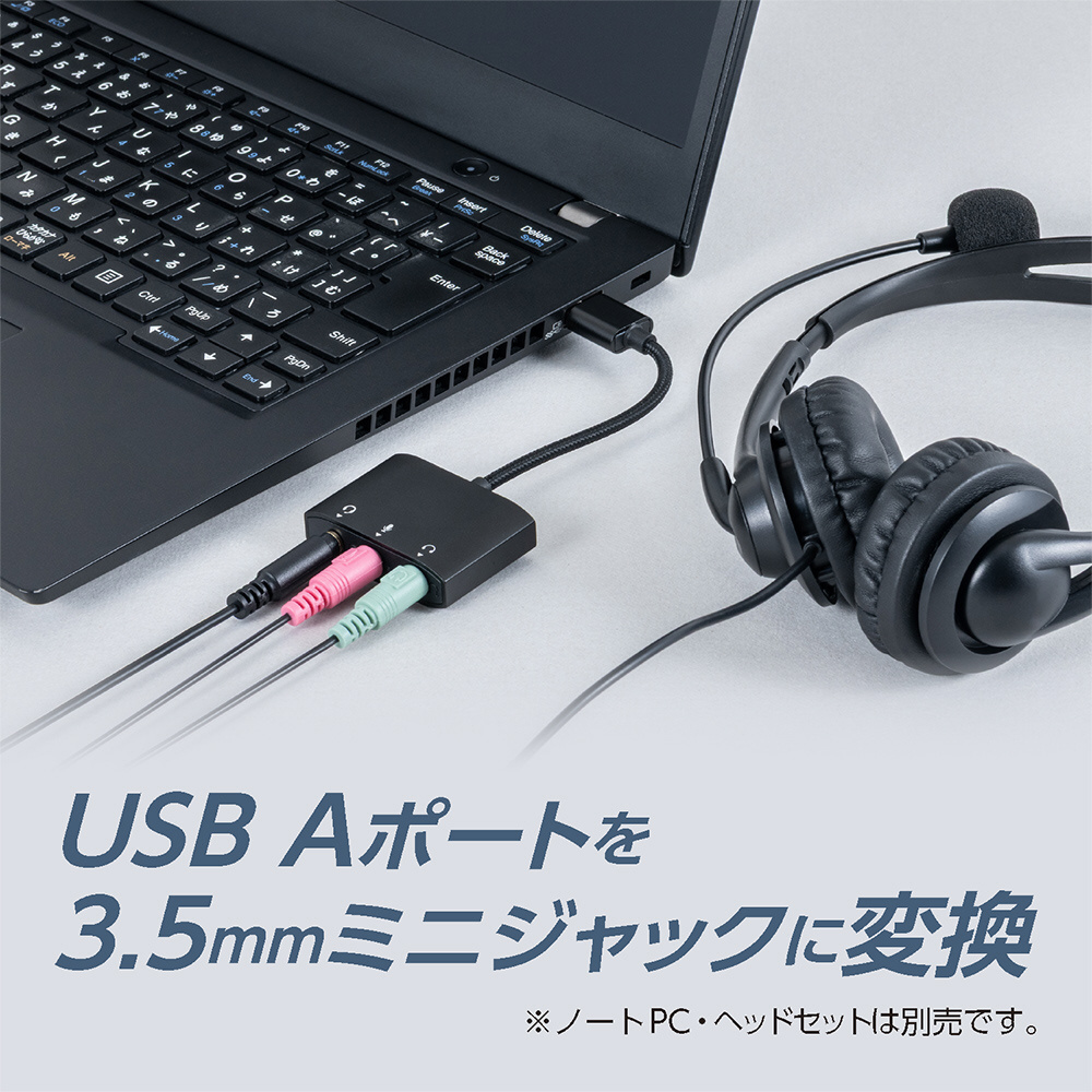 オーディオ変換プラグ [USB-A オス→メス 4極φ3.5mm+3極φ3.5mmx2] (Mac/Windows11対応) ブラック UAD-AS01BK