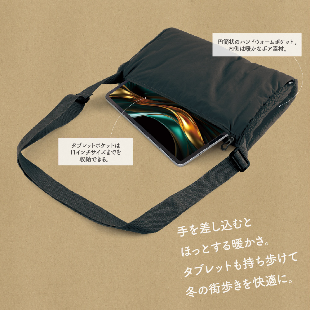 タブレットPCを持ち歩けるハンドウォーマーバッグ