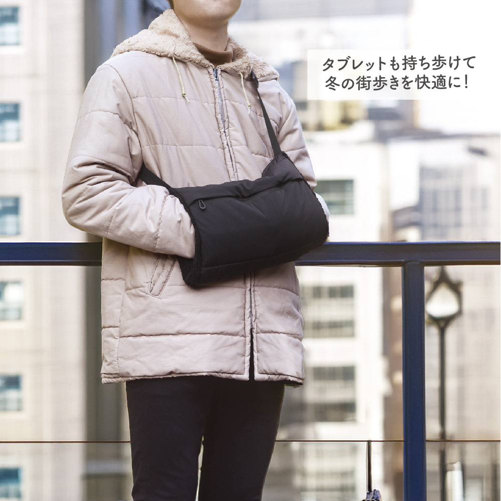 ■手を差し込むとほっとする暖かさ。タブレットも持ち歩けて冬の街歩きを快適に。