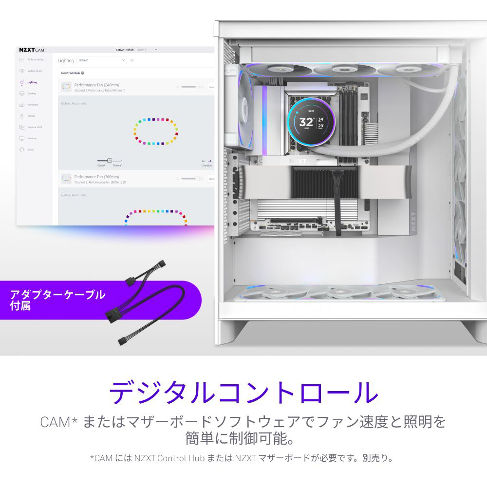 NZXT CAMソフトウェアや各社マザーボードソフトで、自由なカスタマイズが可能です。