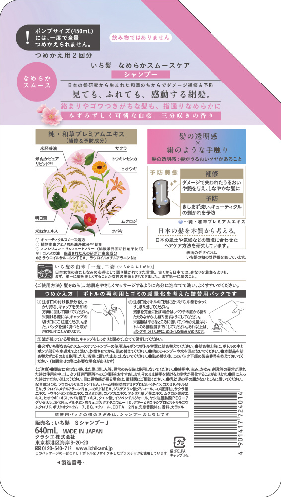 いち髪 なめらかスムースケア シャンプー 詰替用2回分 640ml