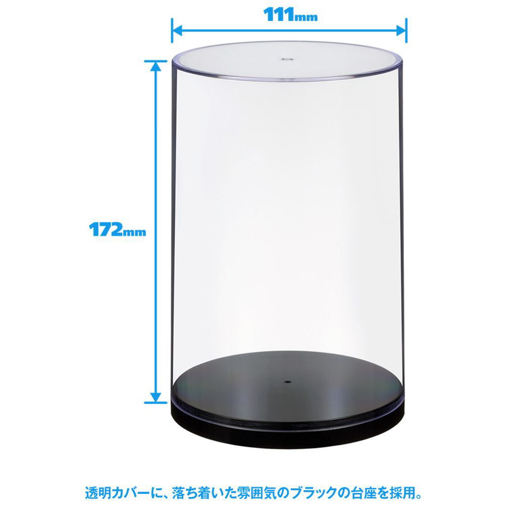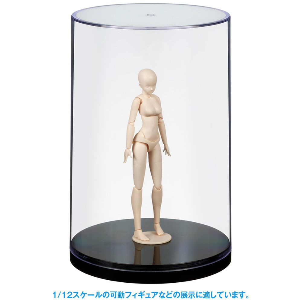 透明カバーに、落ち着いた雰囲気のブラックの台座を採用しました。1/12スケールの可動フィギュアなどの展示に適しています。