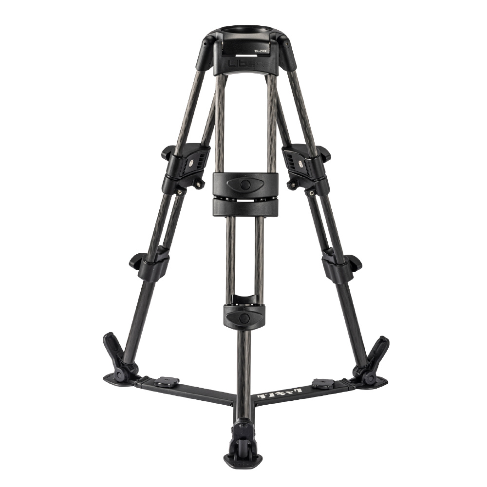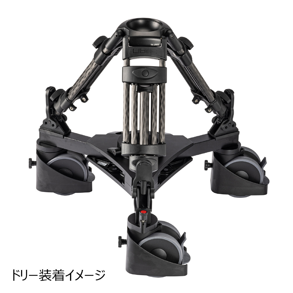 プロ用ベビー三脚「TK-210C」。3段脚で伸縮幅が広く、最低高さ21cmのローアングルから最高高さ70cmまでの撮影ポジションをカバーします。「TK-210C」は100mmポール機材も取り付けることができます。また、耐荷重40kgでありながら、カーボンパイプを使用しているため、軽量・コンパクトで容易に持ち運べます。