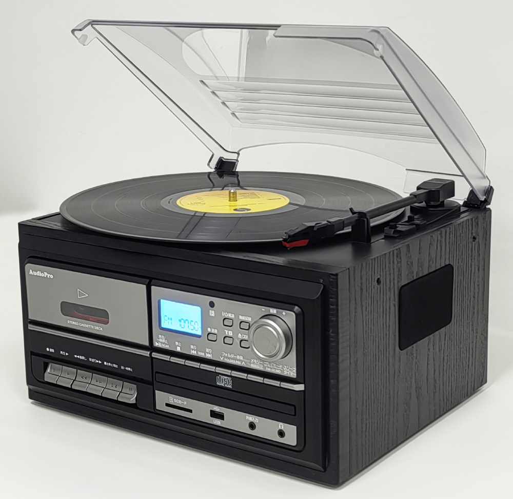レコード・CD・カセット・ラジオ(ワイドFM対応)に加え、USBメモリやSDカードの再生/録音にも対応した、1台完結の多機能オーディオプレーヤー。懐かしのアナログ音源も、ボタンひとつでUSBやSDカードに簡単録音。思い出の音を手軽にデジタル保存できます。