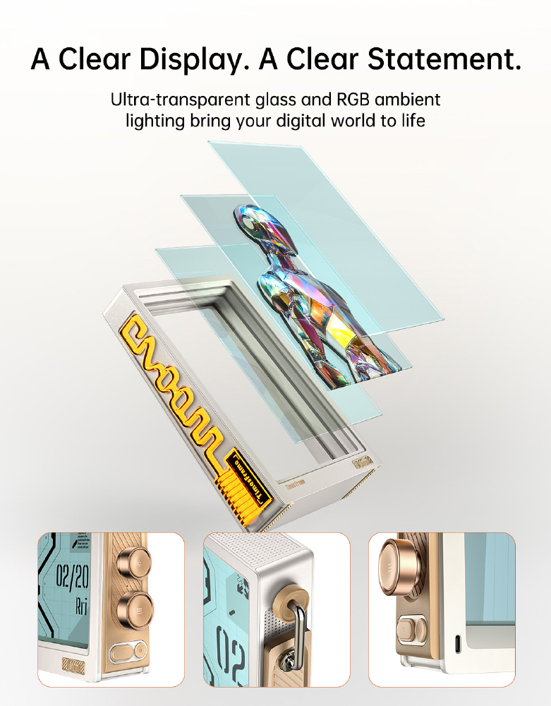 ・3層強化ガラス構造と独自のバックライト技術を採用し、写真が宙に浮く「2.5D透明マジック」を実現