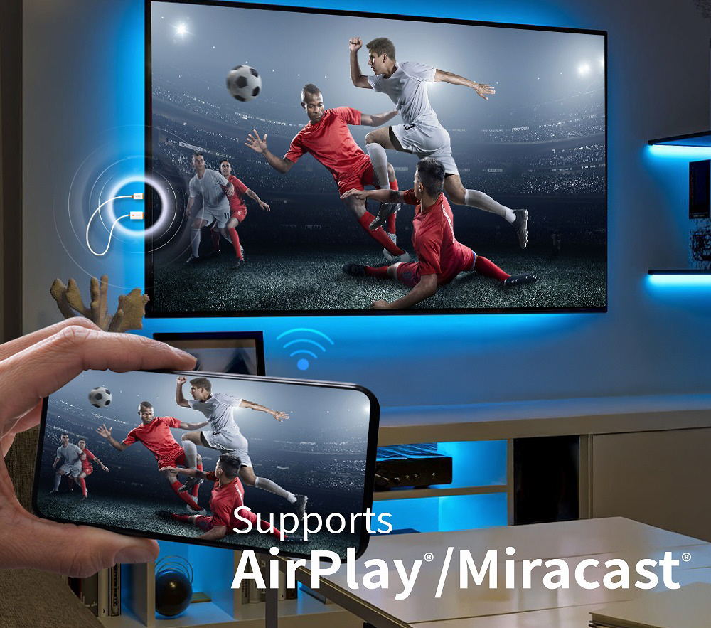 送信機を使用せずに直接端末やPCからMircast、AirPlay(Chrome OS対応できません)で無線ミラーリングできます。
