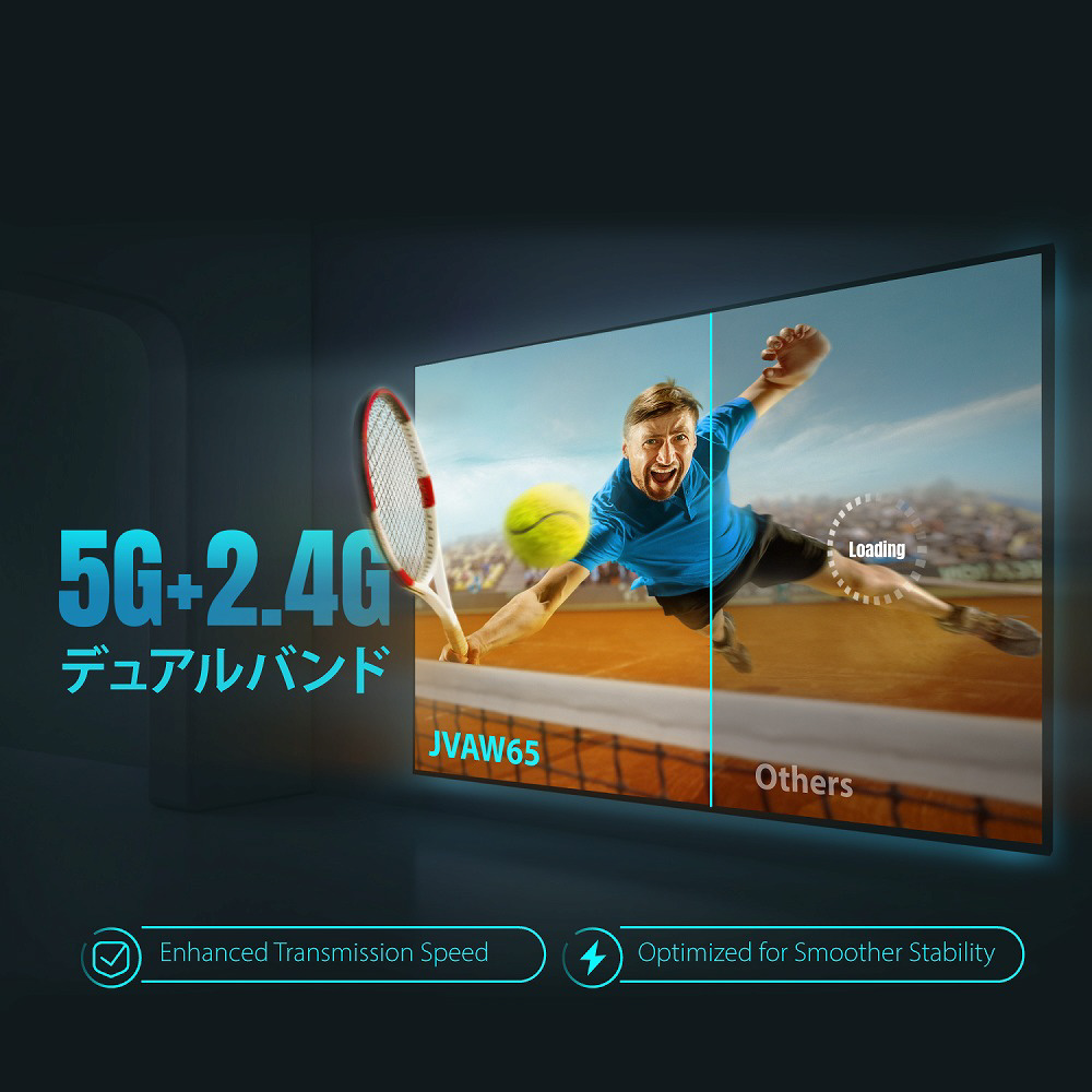 2.4GHz/5GHz の高速周波数帯を利用し、安定したワイヤレス伝送を実現します。