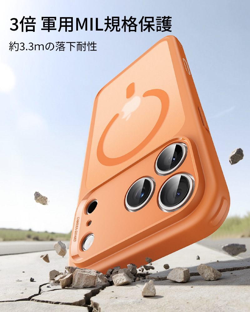 iPhone 17 Pro (6.3インチ)MagSafe対応、ミリタリーグレードハードケース フロストオレンジ 1A86301002-Frosted Orange