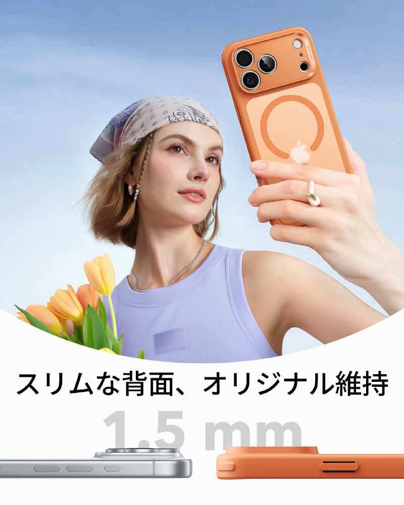 高純度アクリル素材が、iPhoneの洗練されたデザインラインとカラーを完璧に映し出すクリアさを実現します。さらに嬉しい「透明」の魅力として、ケース背面と本体の間にオリジナルの写真やメモ、お気に入りのシールを挟めるデザインに、思い出やこだわりのアイテムを透かして見せれば、世界でひとつだけのマイデザインに早変わります! 季節や気分で中身を入れ替えるだけで、手軽にオリジナリティを表現できます。軽量設計としっとりなめらかな手触りが、カスタマイズの楽しみと日常の使いやすさを両立させます