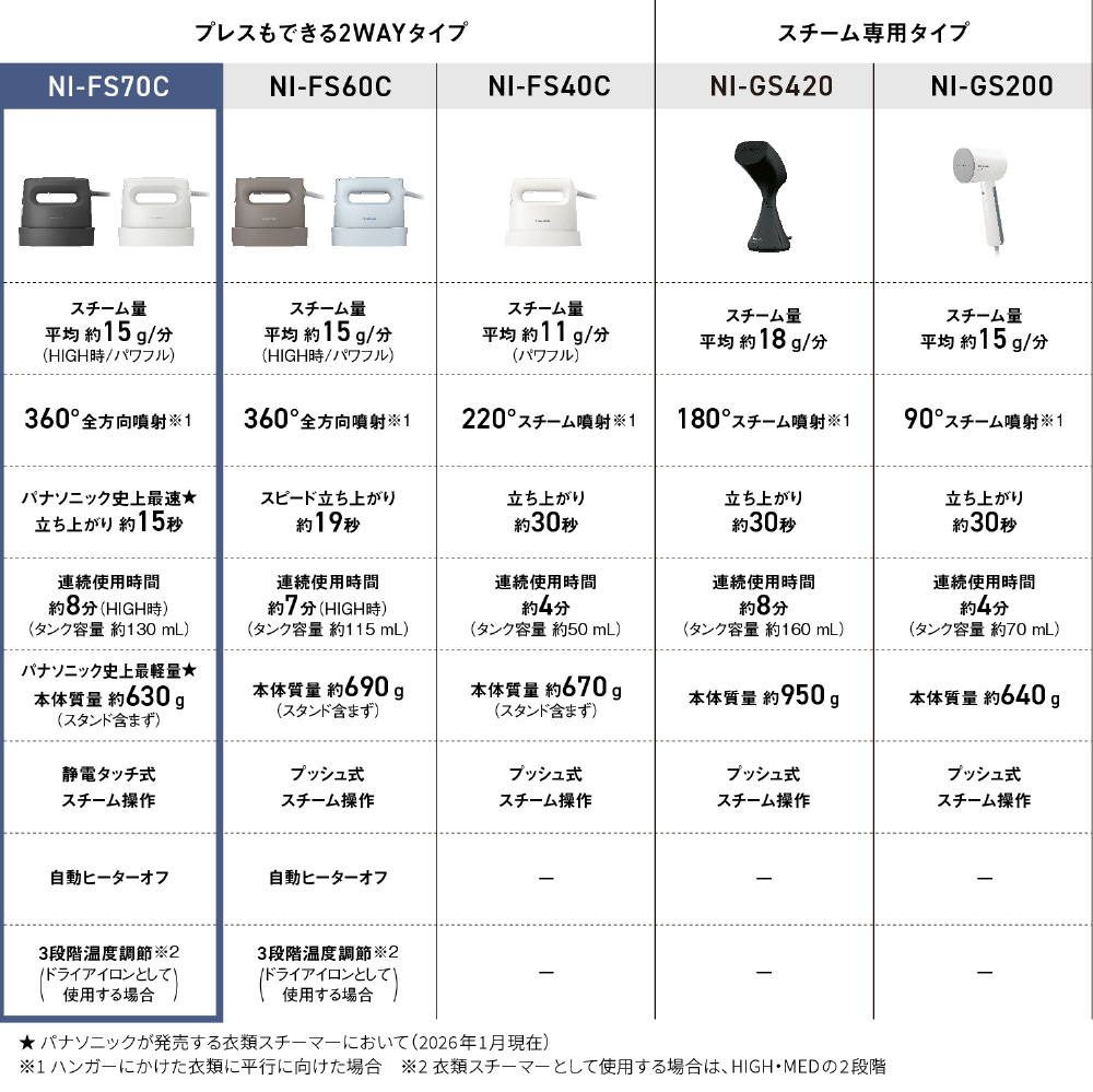 ※4当社発売衣類スチーマーにおいて(2026年1月現在)