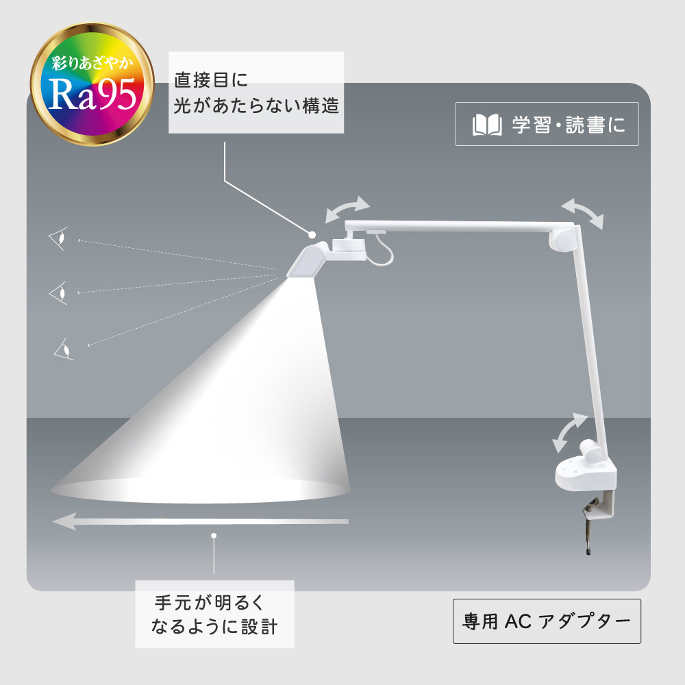 ● 直接目に光があたらない構造で手元が明るくなるように設計