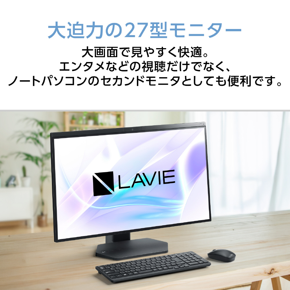 PC-A2795LAB モニター一体型デスクトップPC LAVIE A27(A2795/LAB)[M365 (24か月) or Office 選択可能] ファインブラック [27型 /Windows11 Home /intel Core i7 /メモリ:16GB /SSD:512GB /2026年春モデル]