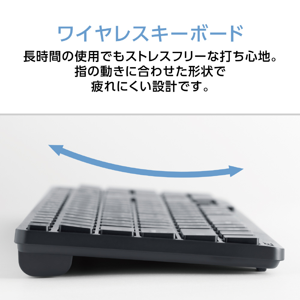 [キーボード]ワイヤレスキーボード(102キー、JIS標準配列、本体接続ボタン、Bluetooth機器接続ボタン×2、Copilotキー) [マウス(ブラック)]ワイヤレス BlueLEDマウス(横チルト機能付き) [ボタン]明るさ調節つまみ/画面消灯ボタン、入力切換ボタン