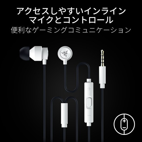 インラインマイク&コントロール付きユニバーサル有線ゲーミングイヤホンのホワイトモデル