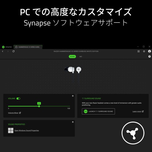 マイク感度を調整することで、他の人に自分の声がどのように聞こえるかを微調整できます。PC で 7.1 THX サラウンドサウンドを有効にすることで、オーディオへの没入感をさらに高めることができます。