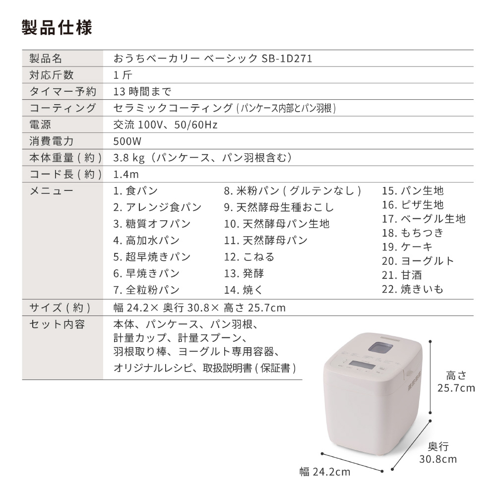 おうちベーカリー ベーシック ホワイト SB-1D271(W) [1.0斤]