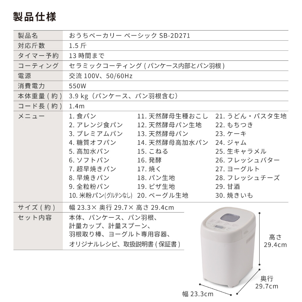 おうちベーカリー ベーシック プラス ホワイト SB-2D271(W) [1.5斤]