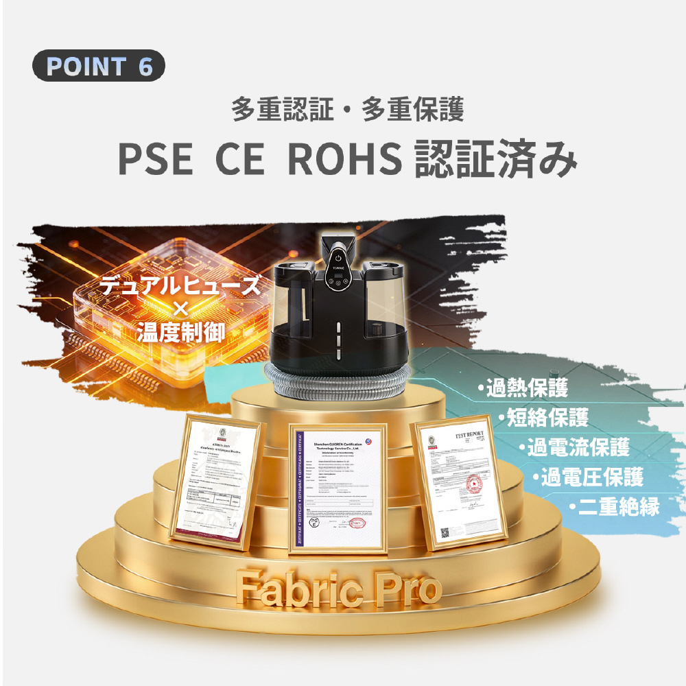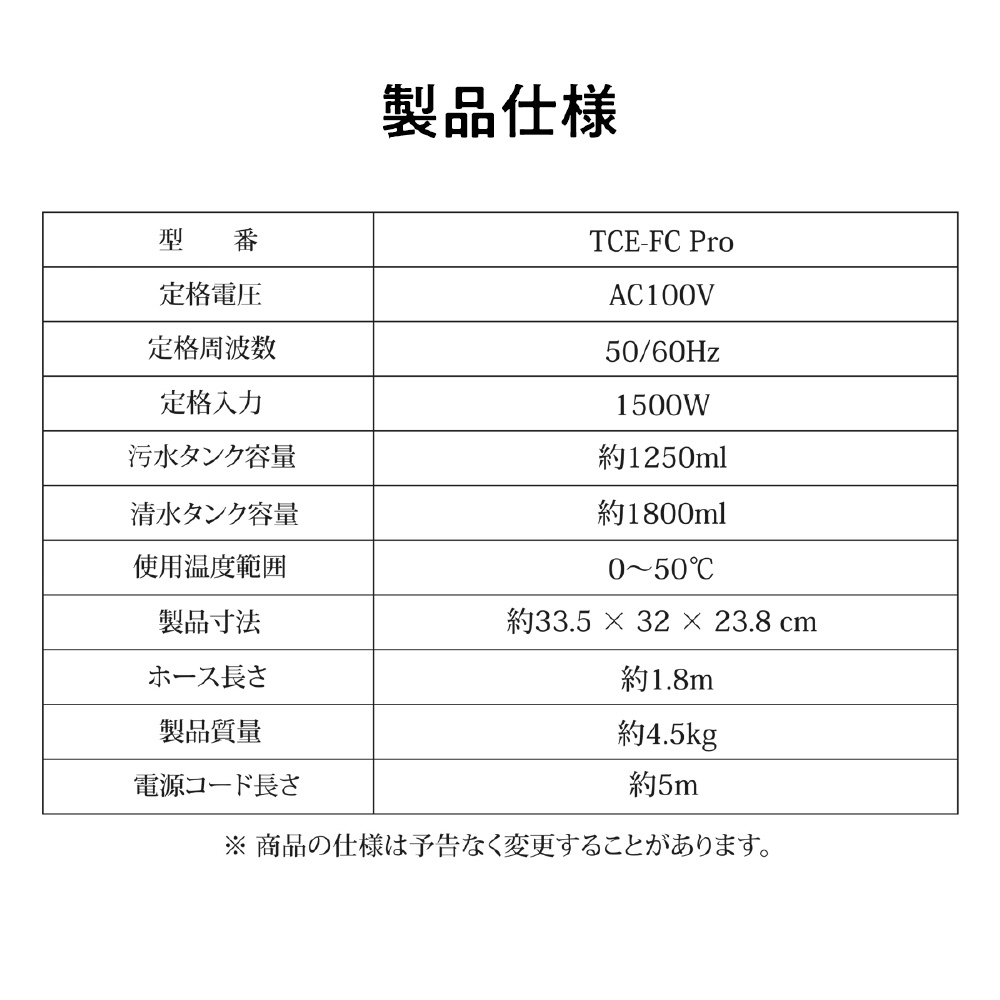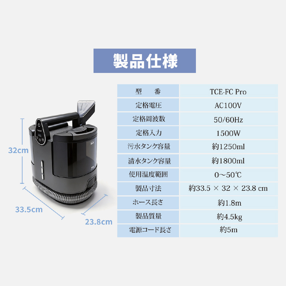 ファブリッククリーナー ファブロ スチーム カーペットクリーナー 18,000Pa 強力吸引 温水洗浄 4段階温度切替 ブラック TCE-FC Pro [キャニスター]