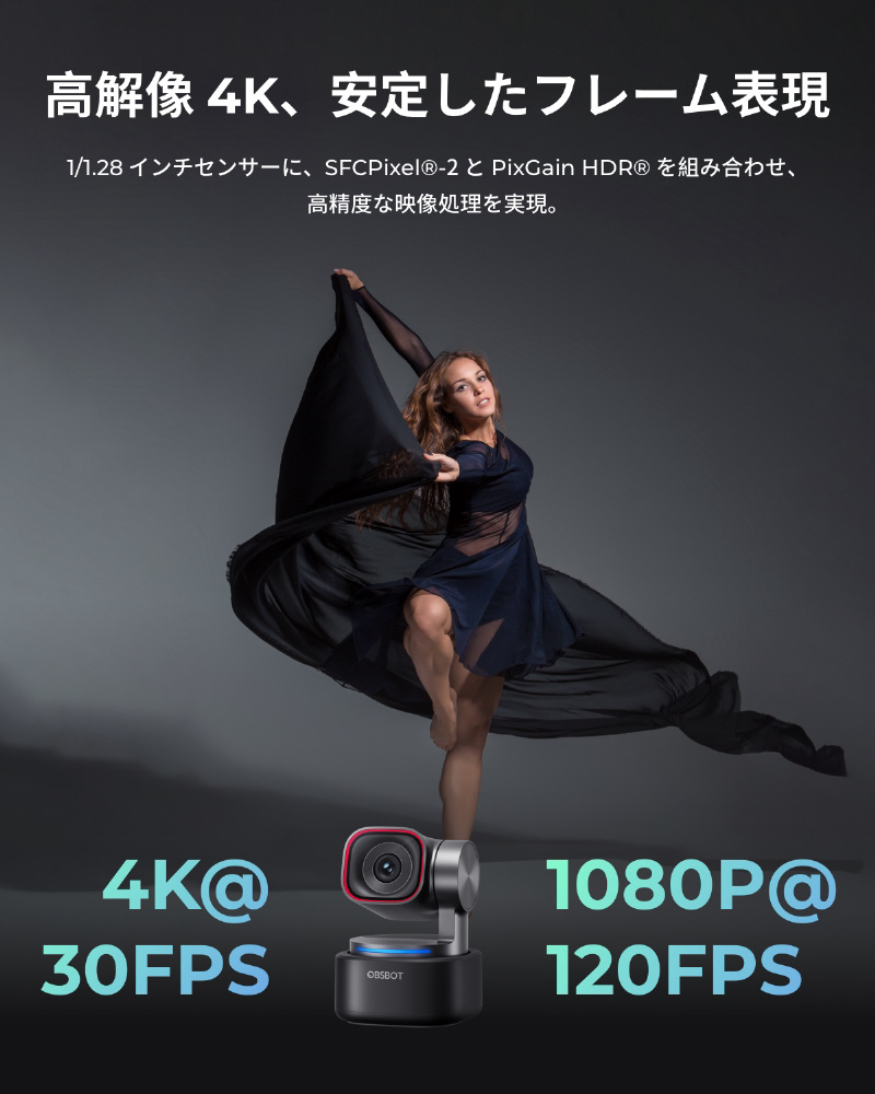 【Tiny Titan‐サイズを超えた実力】現時点でAI搭載4Kウェブカメラの中でも最小級の超コンパクトサイズ、高性能な1/1.28インチCMOSセンサーを搭載。さらにトリプルマイクアレイへ進化し、臨場感のあるプロ品質オーディオを実現するwebカメラ。コンパクトなのに、パフォーマンスは一切妥協しません。