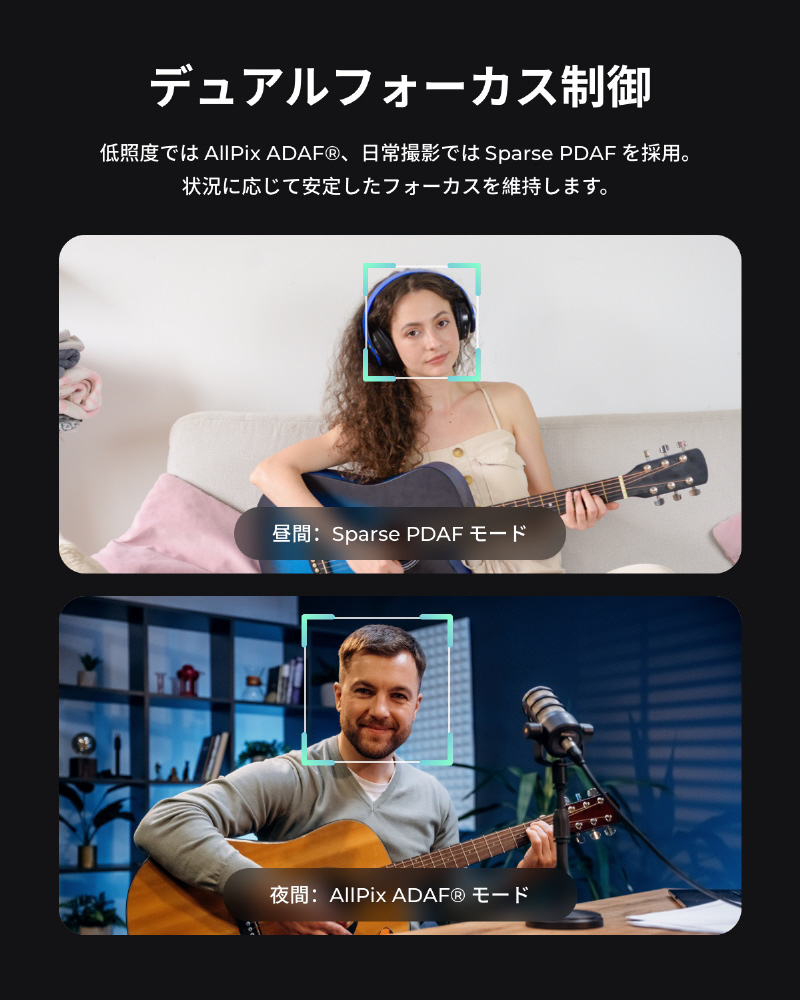 【映像性能、次の次元へ】Tiny 3 usbカメラは4K/30fpsの高精細映像から、1080p/120fpsの滑らかな動きまで対応。光量に応じて最適なフォーカス方式へ自動切替するデュアルAll-Pixel PDAFにより、常にシャープな映像を維持します。ISO 0?12800のワイドISOレンジとDCG HDRの組み合わせで、従来のpc カメラより暗所でも明るさと階調をしっかり再現。配信・会議・撮影すべてにおいて、自然でプロフェッショナルな画質を提供します。