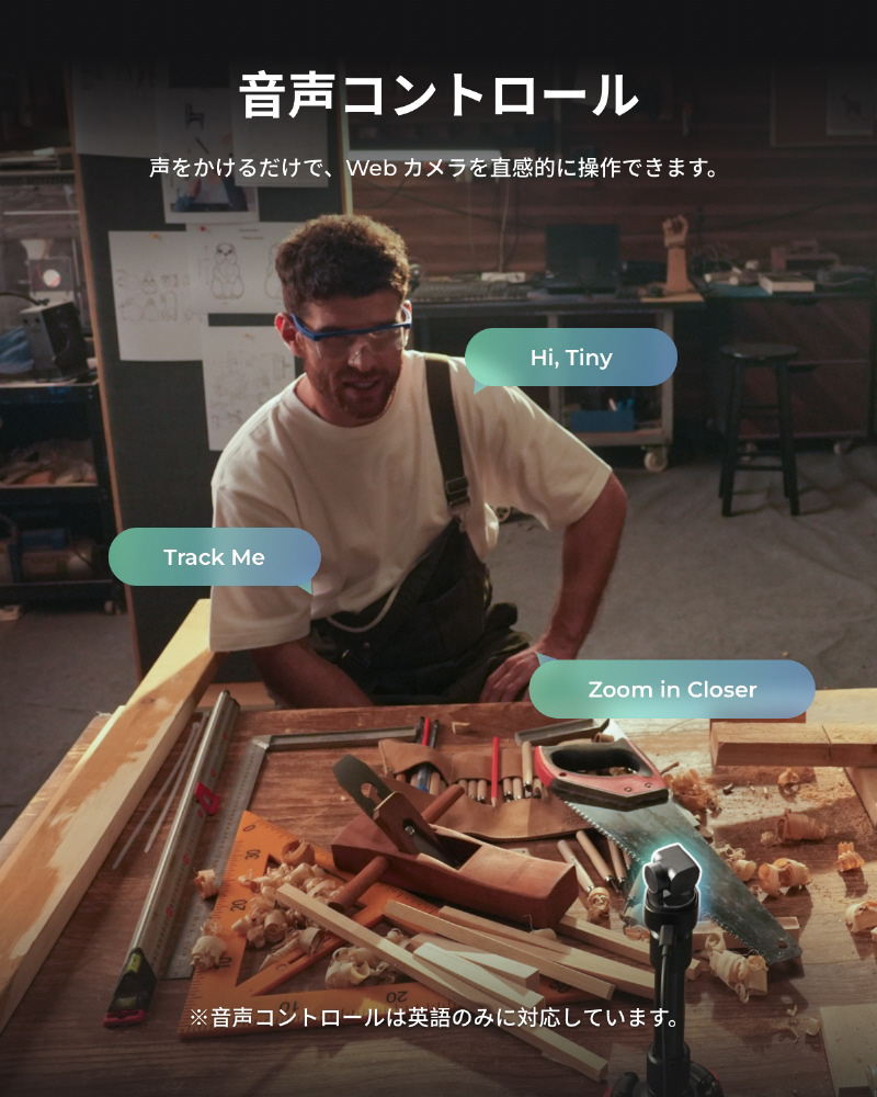 【ボイスやジェスチャーで、直感操作】音声コマンドやジェスチャーで、pcカメラの起動・追尾・ズーム・プリセット切替まで操作可能。ボタン操作不要で、配信や撮影の流れを止めることなく、より自由な表現を実現します。