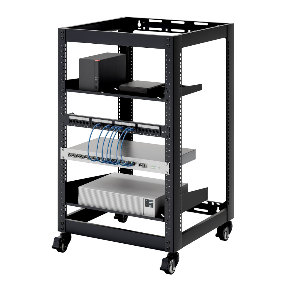 音響や検査機器にも対応。柔軟設置が可能なEIA規格準拠19インチマウントラック。