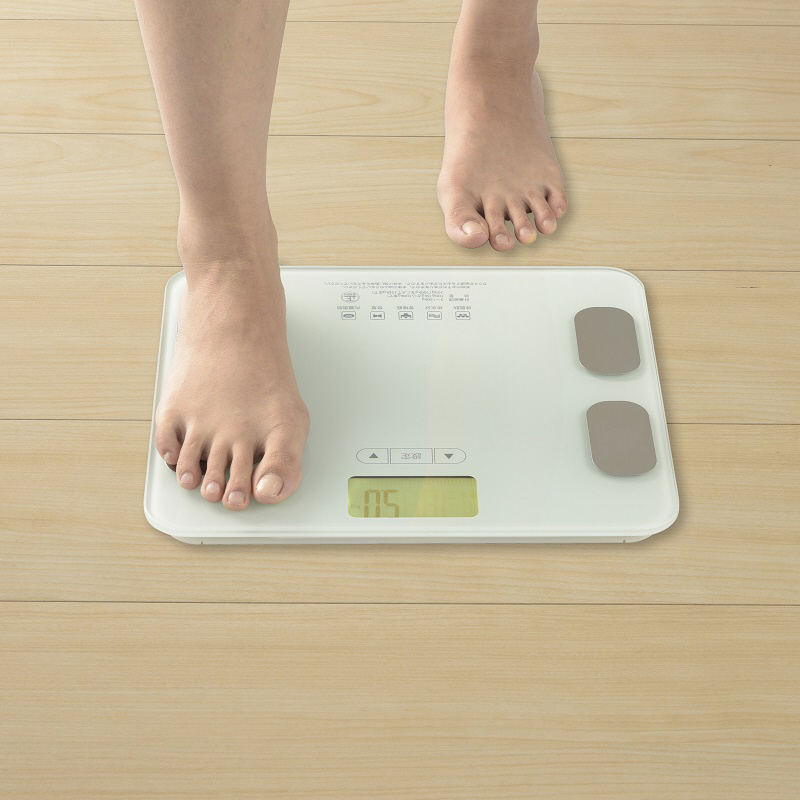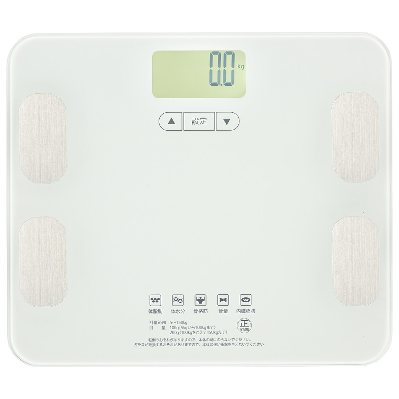 ● 体重、前回体重との差、体脂肪率、体水分率、骨格筋率、骨量、内臓脂肪レベル、基礎代謝量、BMI値が計測できます