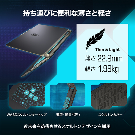 CYBORG-15-A13UC-3250JP ゲーミングノートパソコン Cyborg 15 A13V(RTX 3050) ブラック & スケルトン