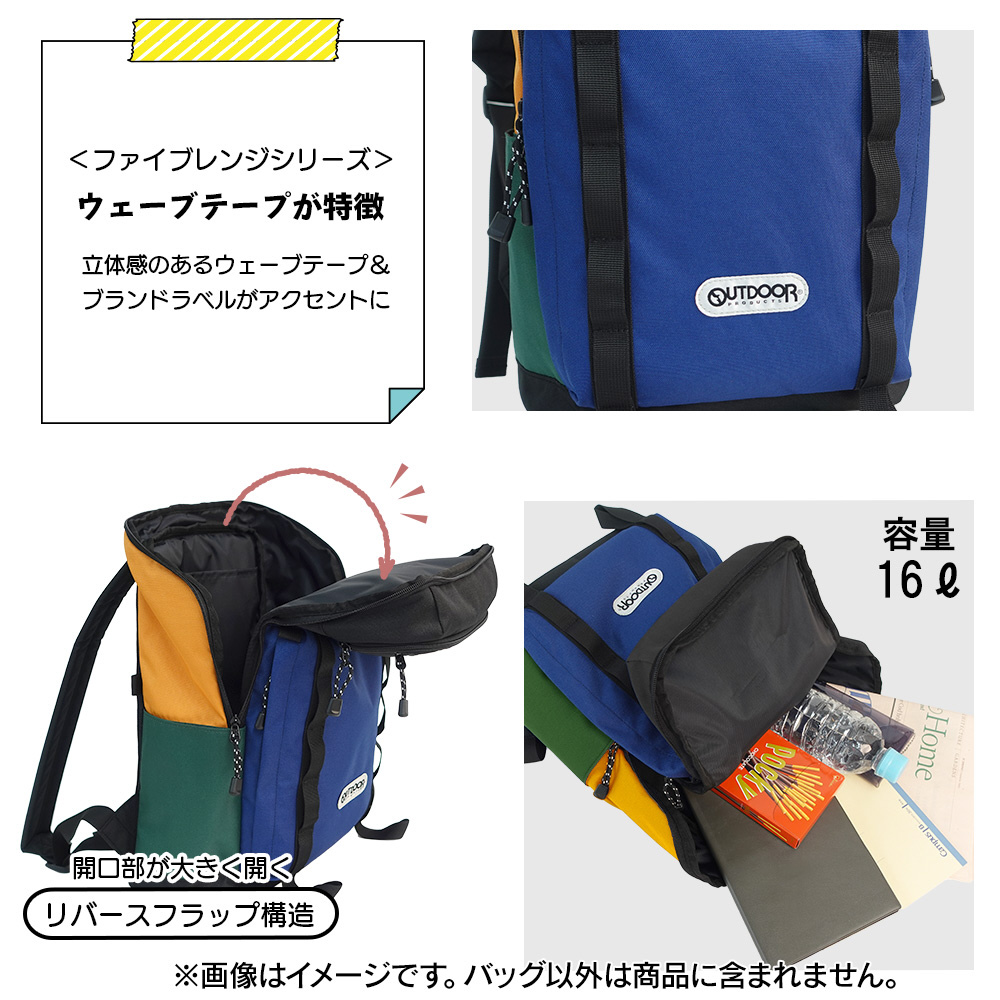 充実した機能に定評がある“OUTDOOR PRODUCTS(アウトドアプロダクツ)”から、外側に大きく開くリバースフラップ構造が特徴的なデイパックが登場