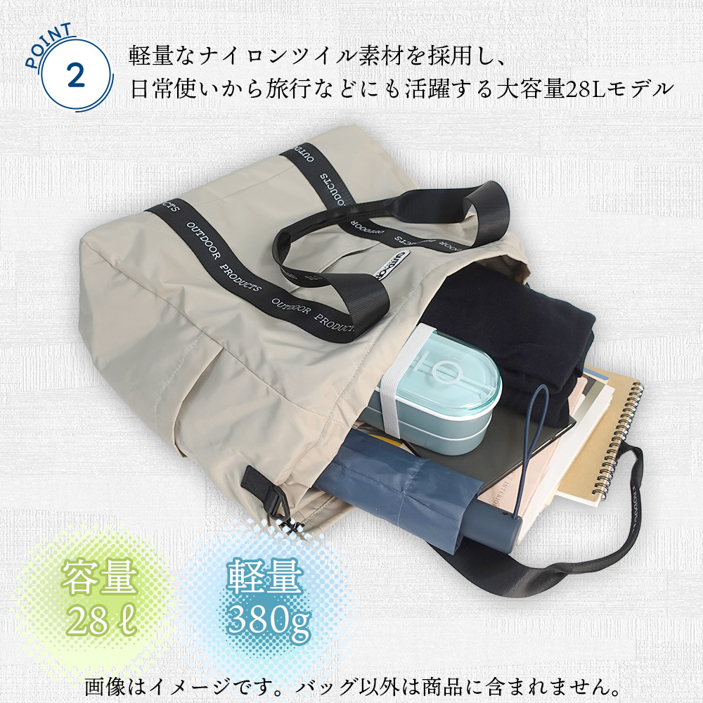 充実した機能に定評がある“OUTDOOR PRODUCTS(アウトドアプロダクツ)”より、光沢感のあるツイル素材を使用した軽量トートショルダーバッグが登場