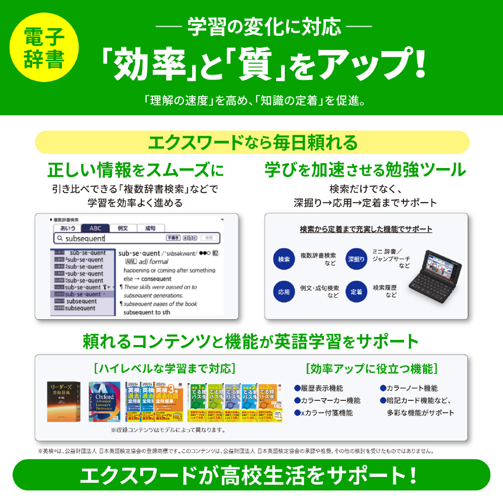 さらなる高みを目指す高校生へ。ハイレベルな英語学習、難関大学合格に向けた高校学習をサポート。 読む、聞く、書く、話すの7技能をバランスよく学習できる英語系コンテンツをはじめ、用語集、参考書、問題集などを幅広く収録。授業の予習・復習から受験まで活用できます。