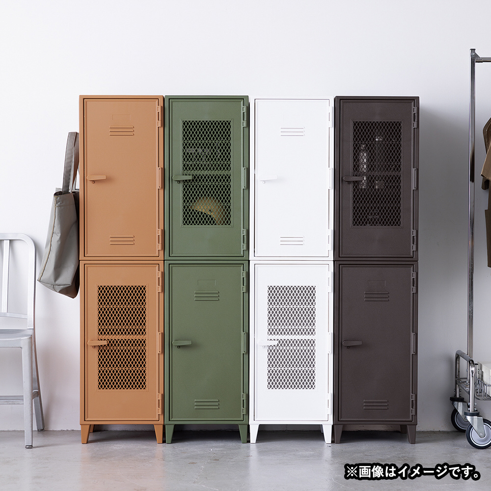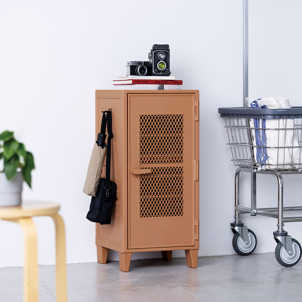 ロッカー型 収納キャビネット メッシュ 扉付き フィッツ オレンジ 615706