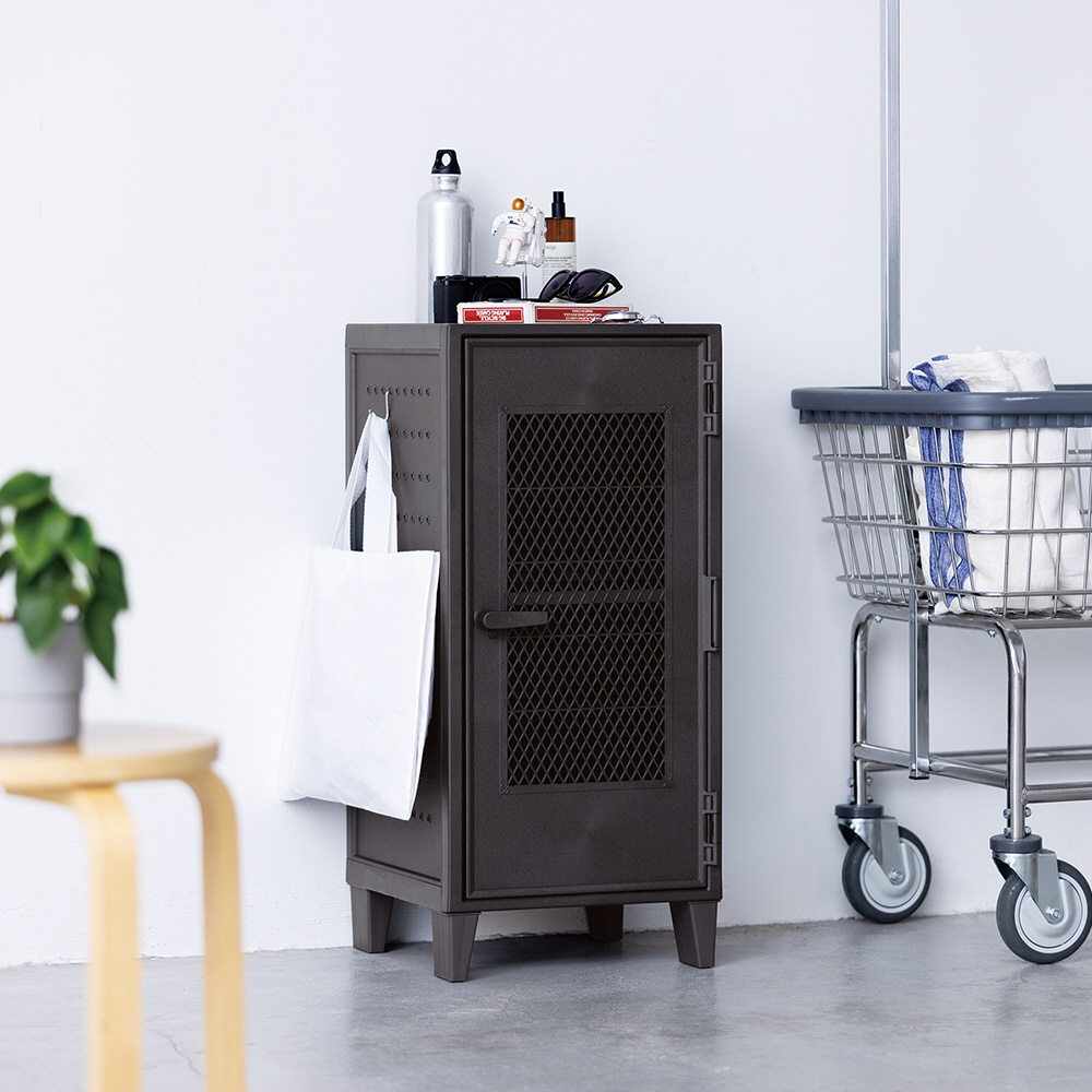 ロッカー型 収納キャビネット メッシュ 扉付き フィッツ ダークグレー 615708