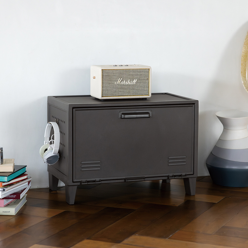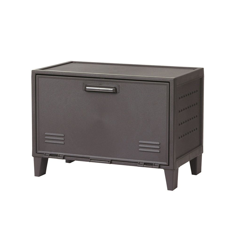 自由にアレンジできる側面にペグボードが付いたプラスチック製のロッカー型収納ケースです。