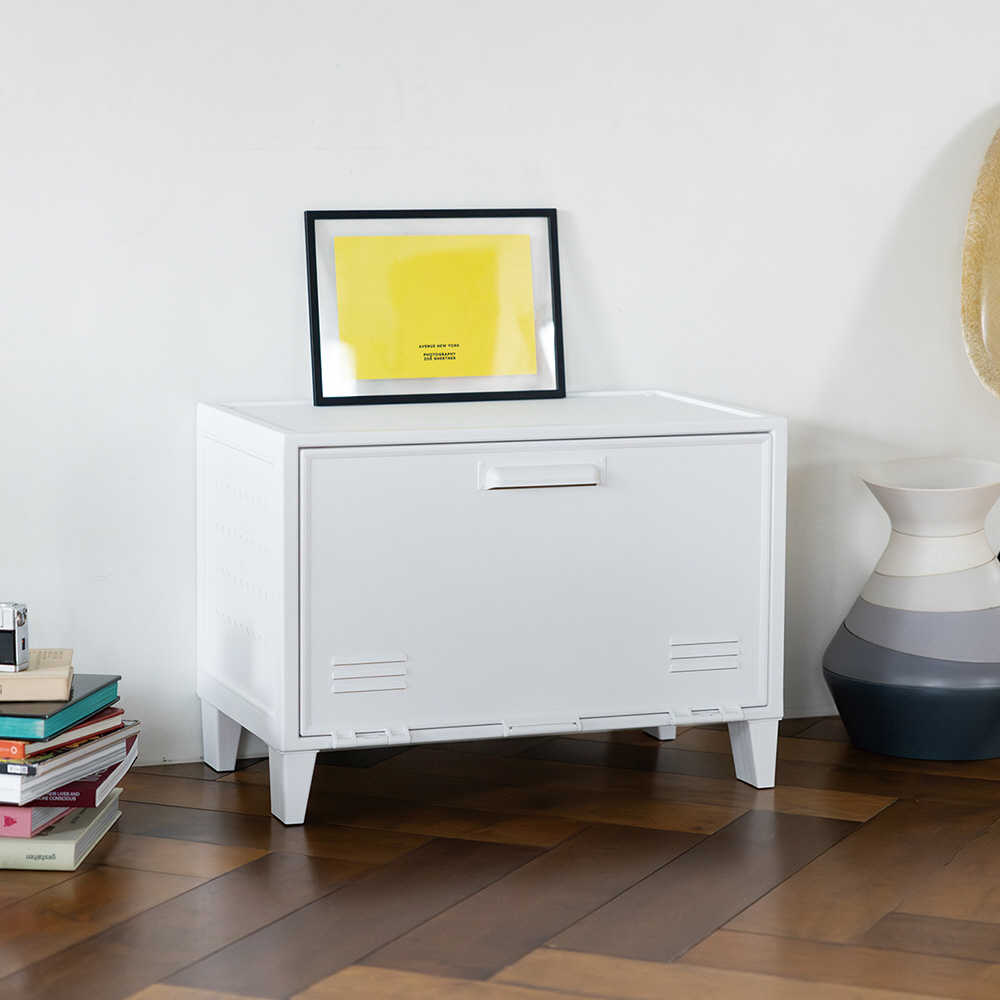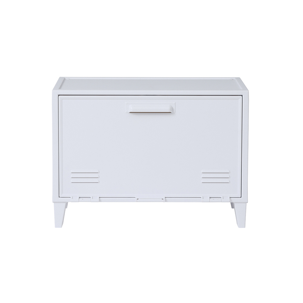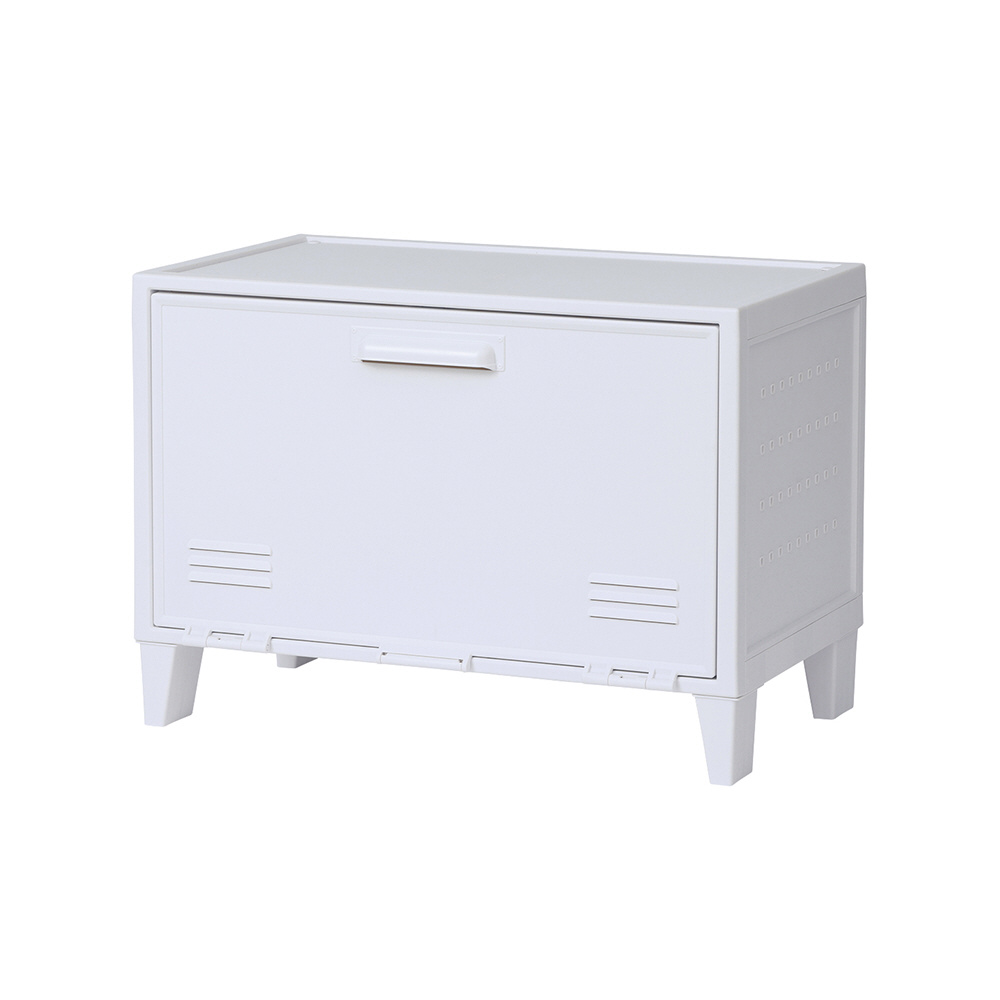 自由にアレンジできる側面にペグボードが付いたプラスチック製のロッカー型収納ケースです。