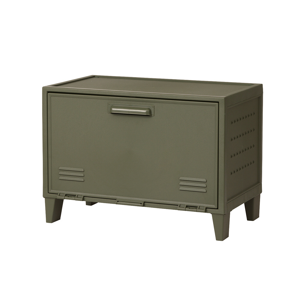 自由にアレンジできる側面にペグボードが付いたプラスチック製のロッカー型収納ケースです。