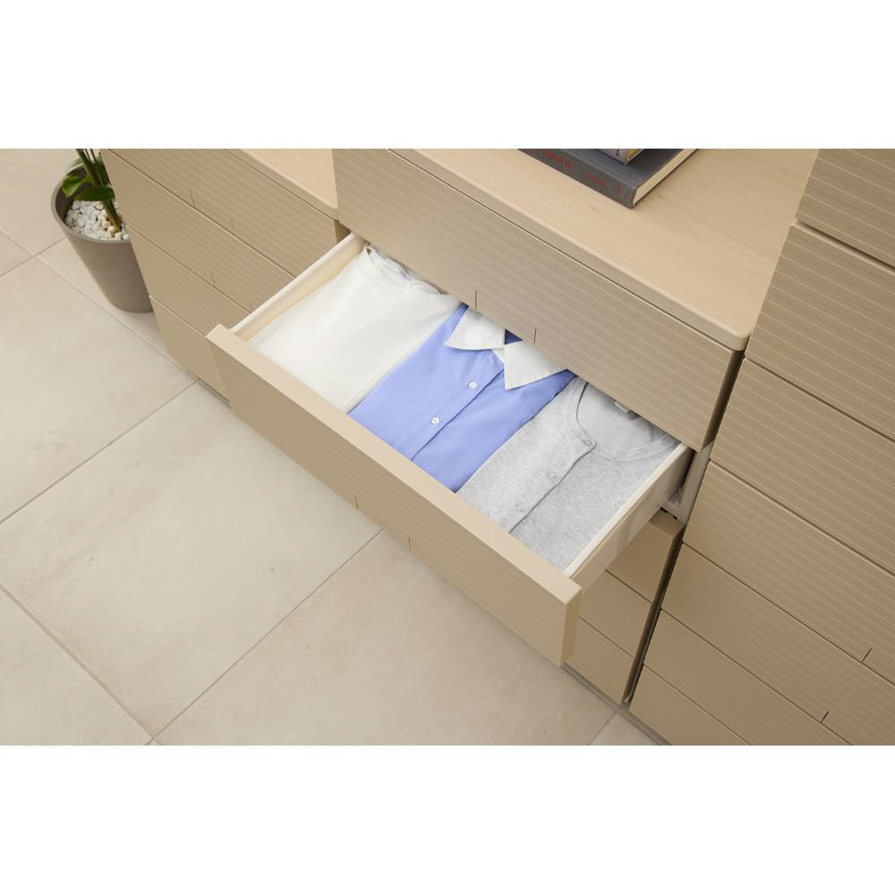 引出しの左右にサイドローラーを内蔵。たくさん収納しても動きがなめらかで、ストレスなくスムーズに引き出せます。