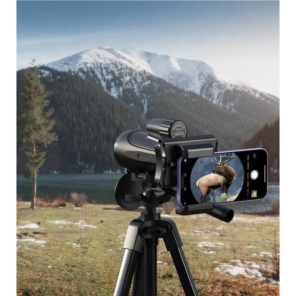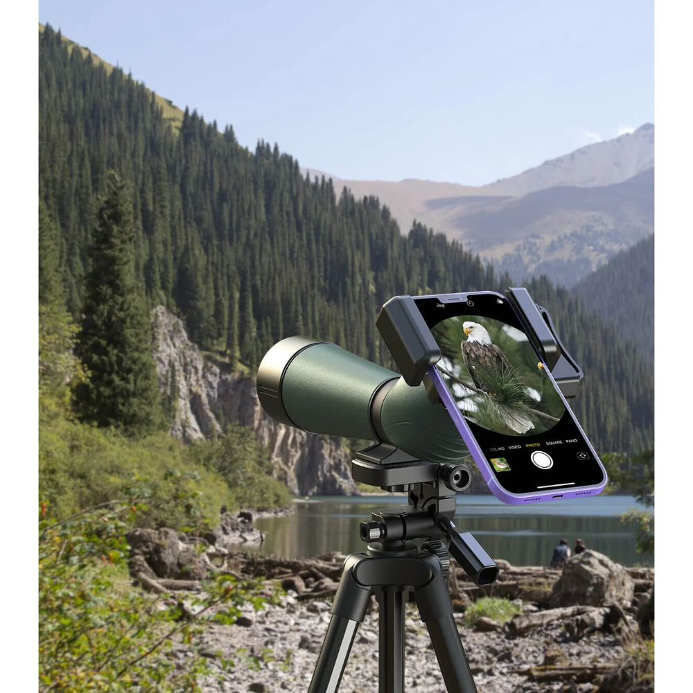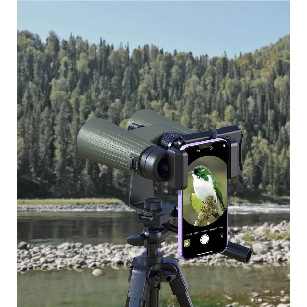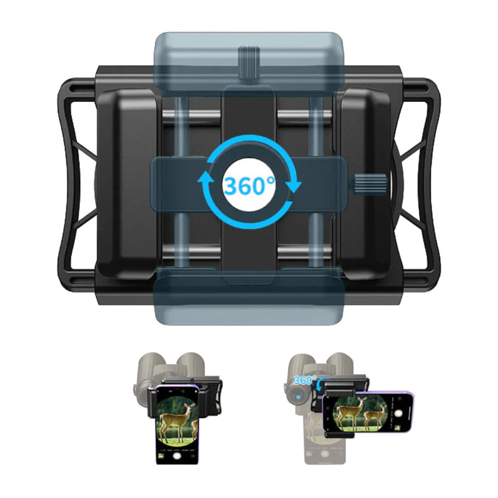 双眼鏡や望遠鏡にスマートフォンを取り付けて撮影可能なアダプター(360度回転機能・スマートフォン固定ネジ搭載)