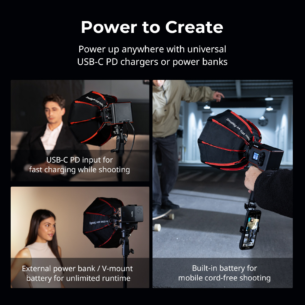 【軽量でポータブル】 寸法 115 x 85 x 85 mm、本体重量わずか 650 g のハンドヘルド写真ライトは、モバイル シナリオでのフラットおよびビデオ コンテンツの作成に非常に適しています。 すべての付属品はエレガントで耐久性のある収納袋に入れることができ、総重量はわずか約1.5kgです。 軽量の収納力と持ち運びやすさにより、ライトの重さに制限されずにコンテンツを作成できます。