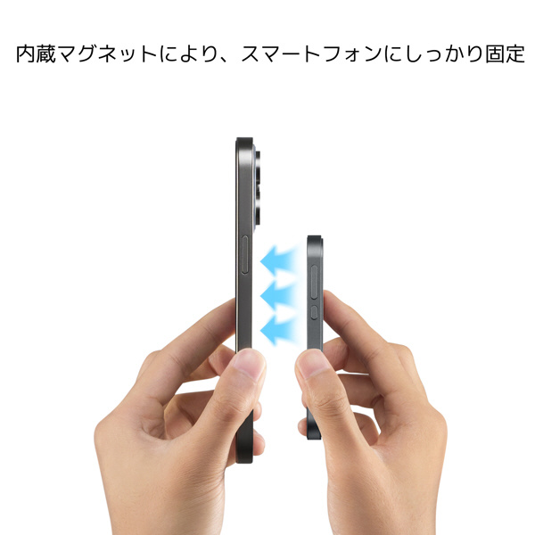 ●マグネット装着で、ピタッとフィット スマートフォン背面などに装着できるマグネット機構を採用。持ち運び時や使用中の安定性を高めることで、日常のリスニングシーンに自然に溶け込むデザインを実現しました。