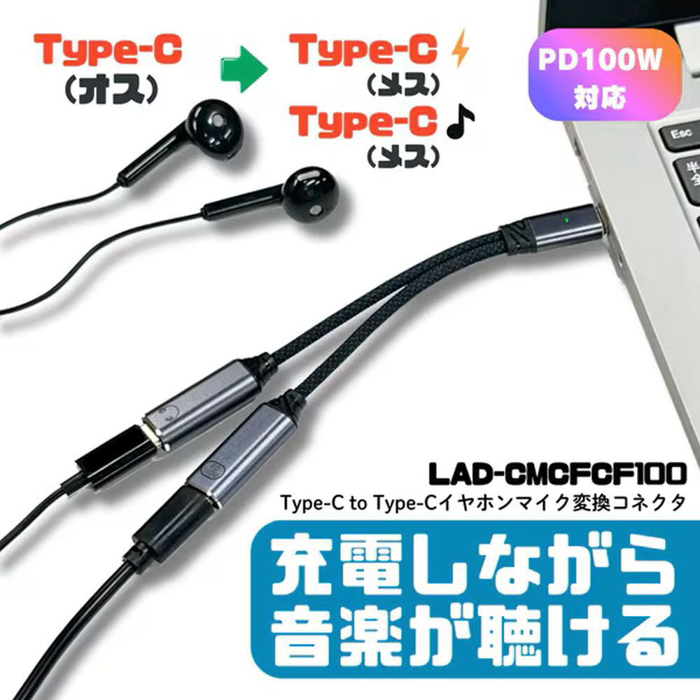 充電ポート付 イヤホン変換アダプタ [USB-Cイヤホン対応タイプ] グレー LAD-CMCFCF100