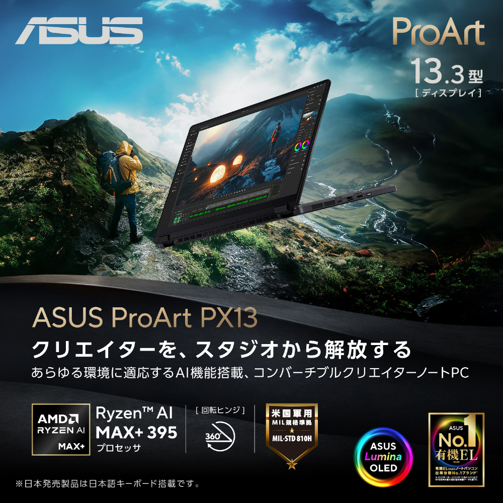 ノートパソコン ProArt PX13 (HN7306) ナノブラック HN7306EA-AI9641W [Copilot+ PC /13.3型 /Windows11 Home /AMD Ryzen AI MAX /メモリ:64GB /SSD:1TB /無し /日本語版キーボード /2026年2月モデル]