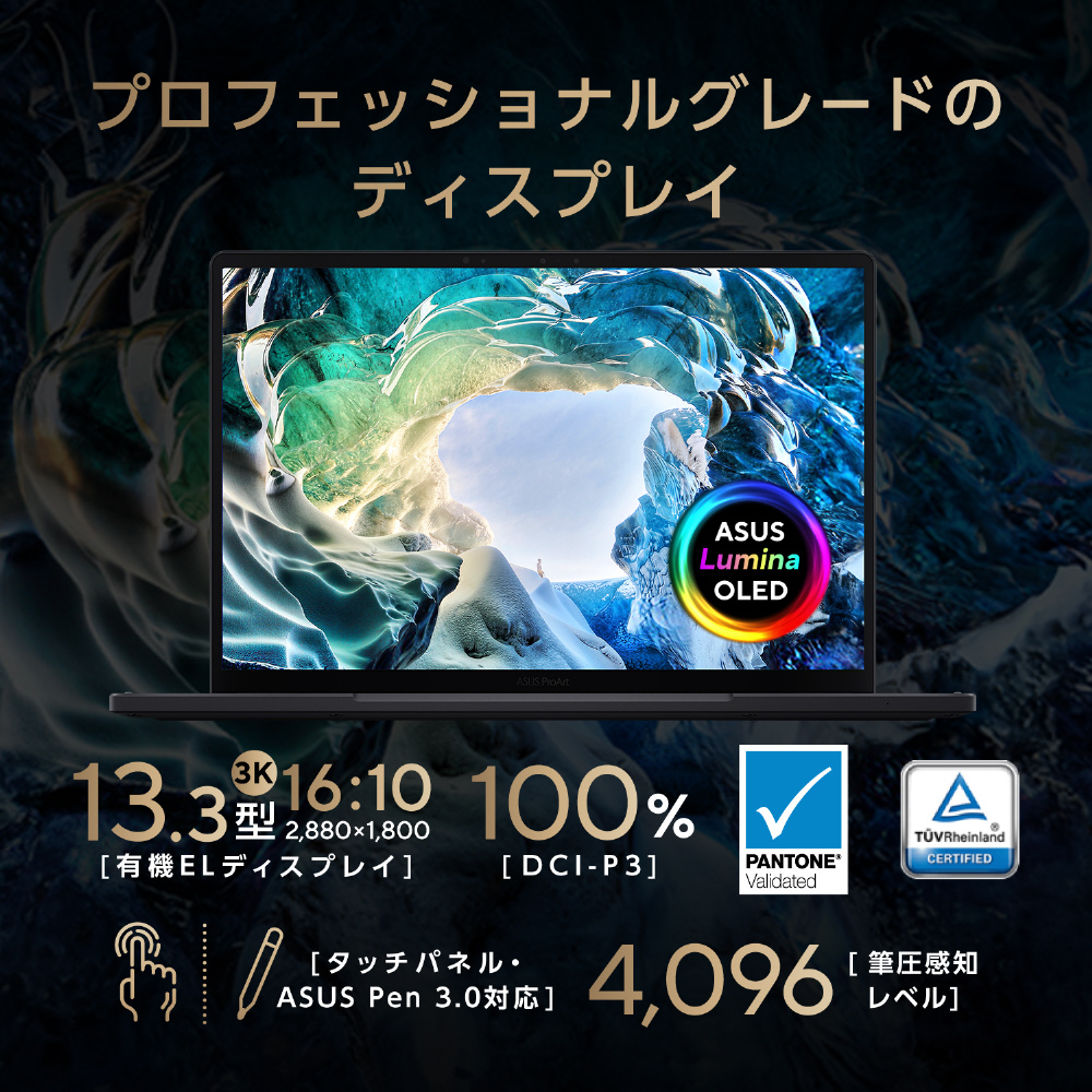 [ディスプレイ]OLED(有機EL)2880×1800ドット、タッチパネル搭載 [記憶装置]SSD 1TB (PCI Express 4.0 x4接続 NVMe/M.2) [消費電力]最大約200W