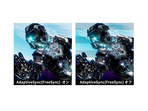 ■AdaptiveSync(FreeSync)に対応。画面のリフレッシュレートとコンテンツのフレームレートのズレから生じるティアリングを防ぎ、滑らかで美しい映像を実現します。