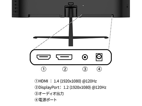 ■インターフェイスはHDMI 1.4×1 (120Hz)とDisplayPort 1.2×1 (120Hz)を搭載し、様々なタイプの機器との接続が可能です。