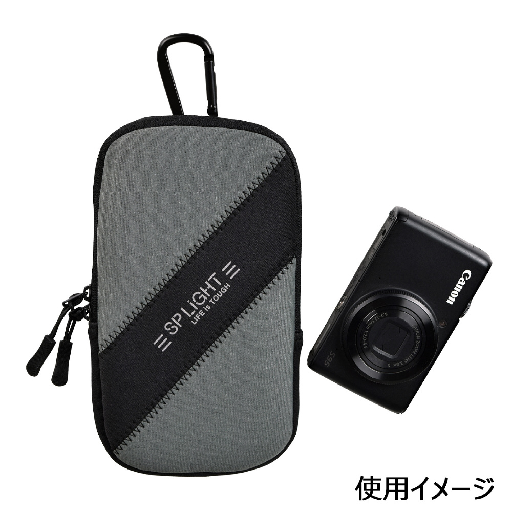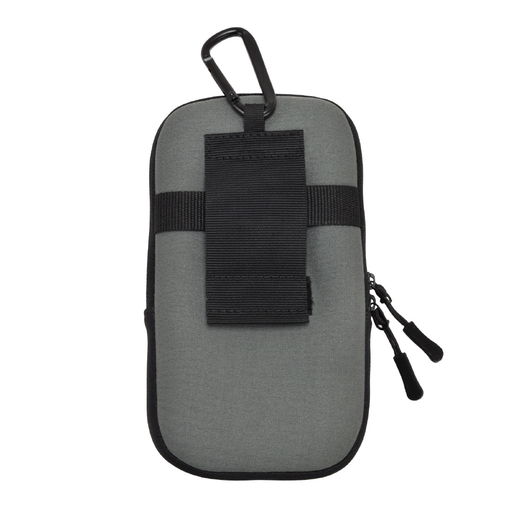 スマホやカメラ・文具や工具など自由に収納できるクッションポーチ。カラビナと縦、横のベルトループを装備しているので、バッグやリュック、腰ベルトに装着できます。