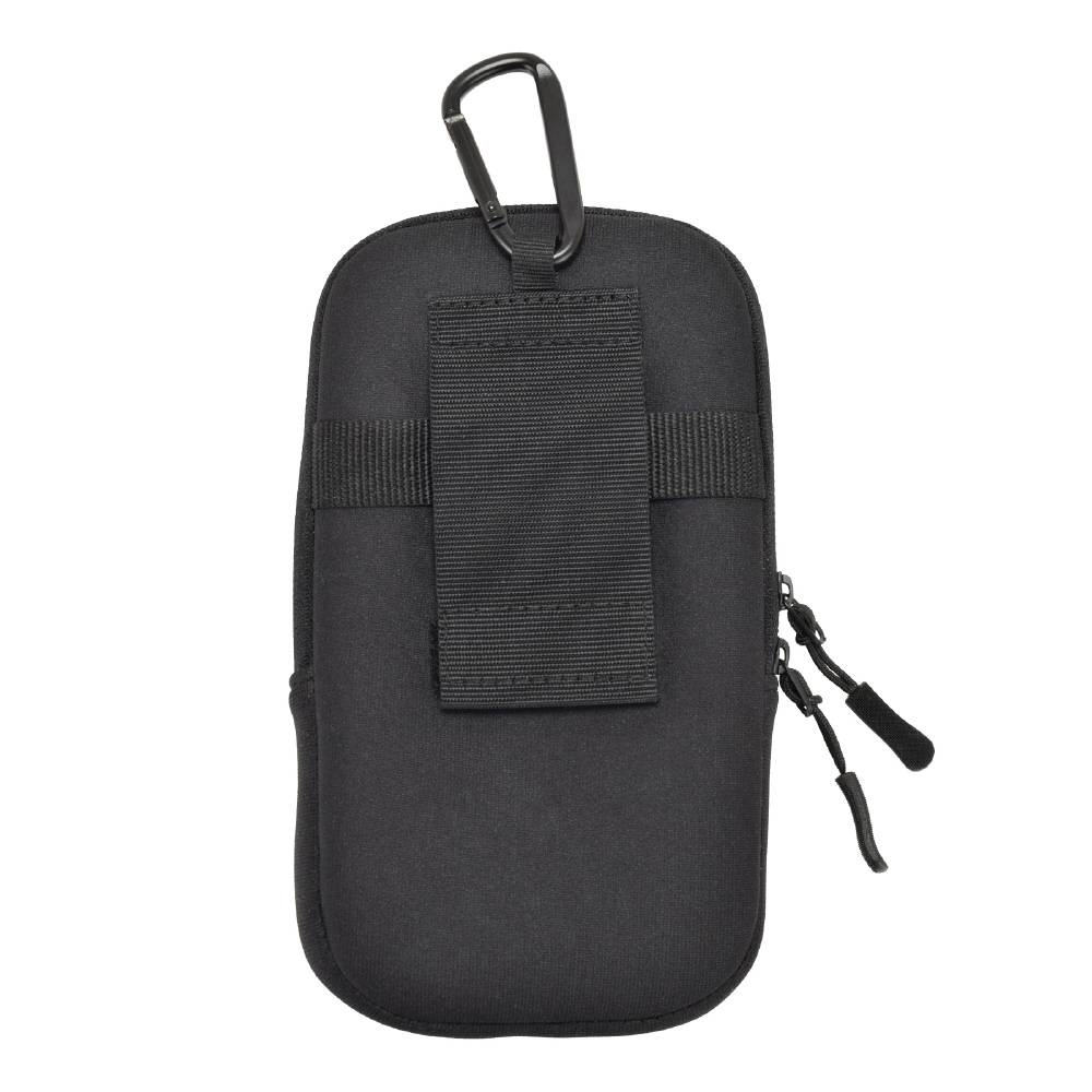 スマホやカメラ・文具や工具など自由に収納できるクッションポーチ。カラビナと縦、横のベルトループを装備しているので、バッグやリュック、腰ベルトに装着できます。