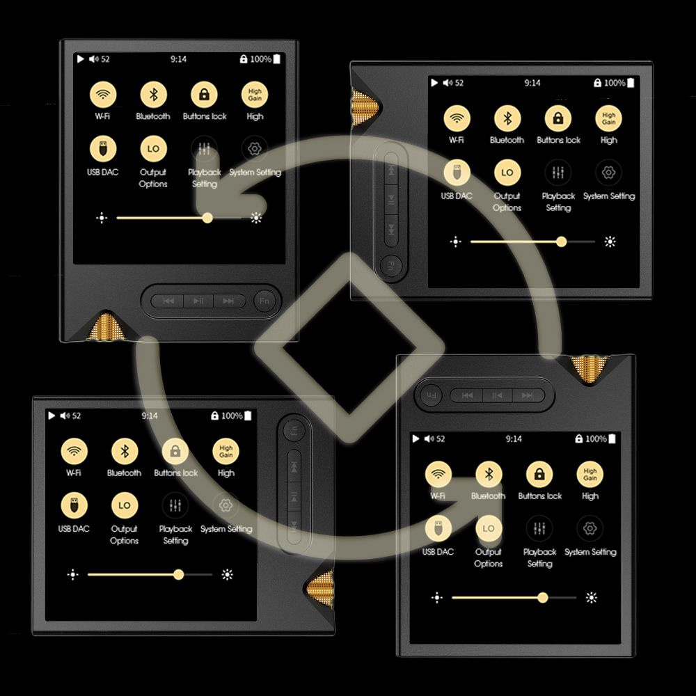 XM2は設定からディスプレイを0°、90°、180°、270°の4種類から自由に回転させることが可能です。